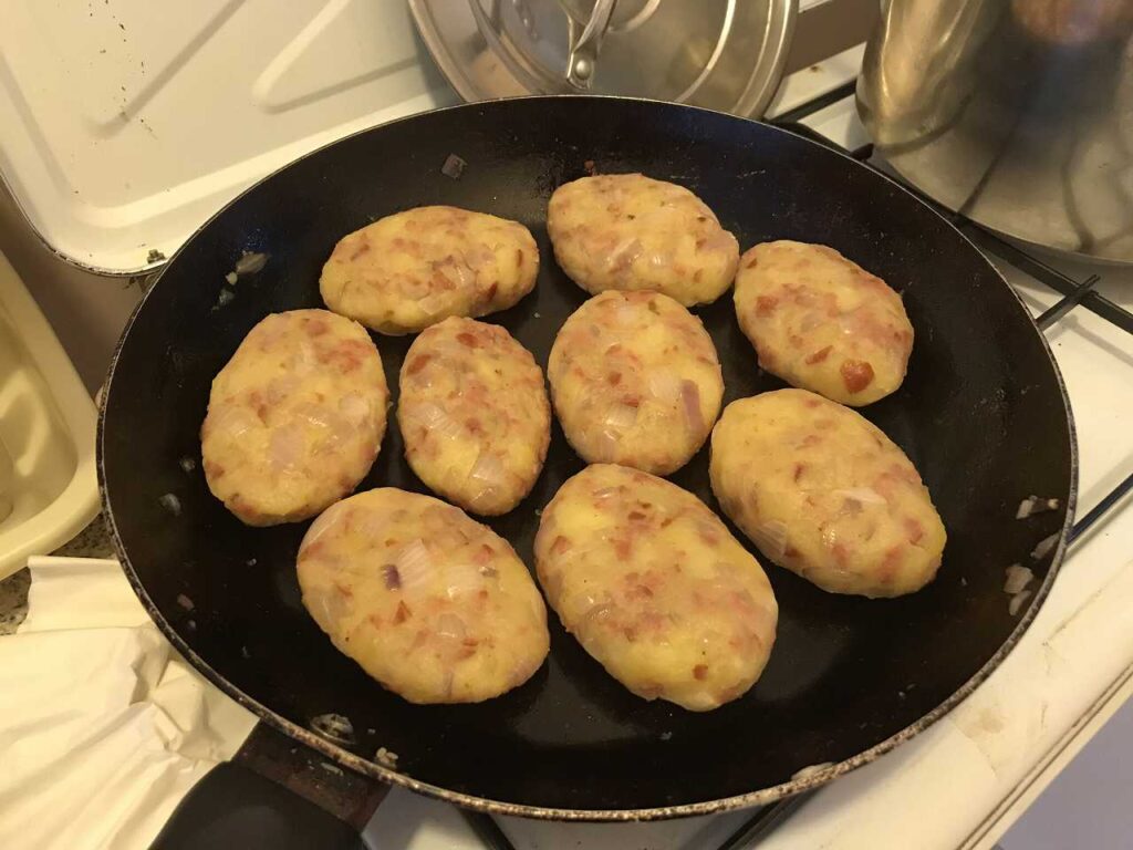 Los ingredientes principales de la croqueta es la papa. Se hierve y se aplasta hasta obtener una masita uniforme.